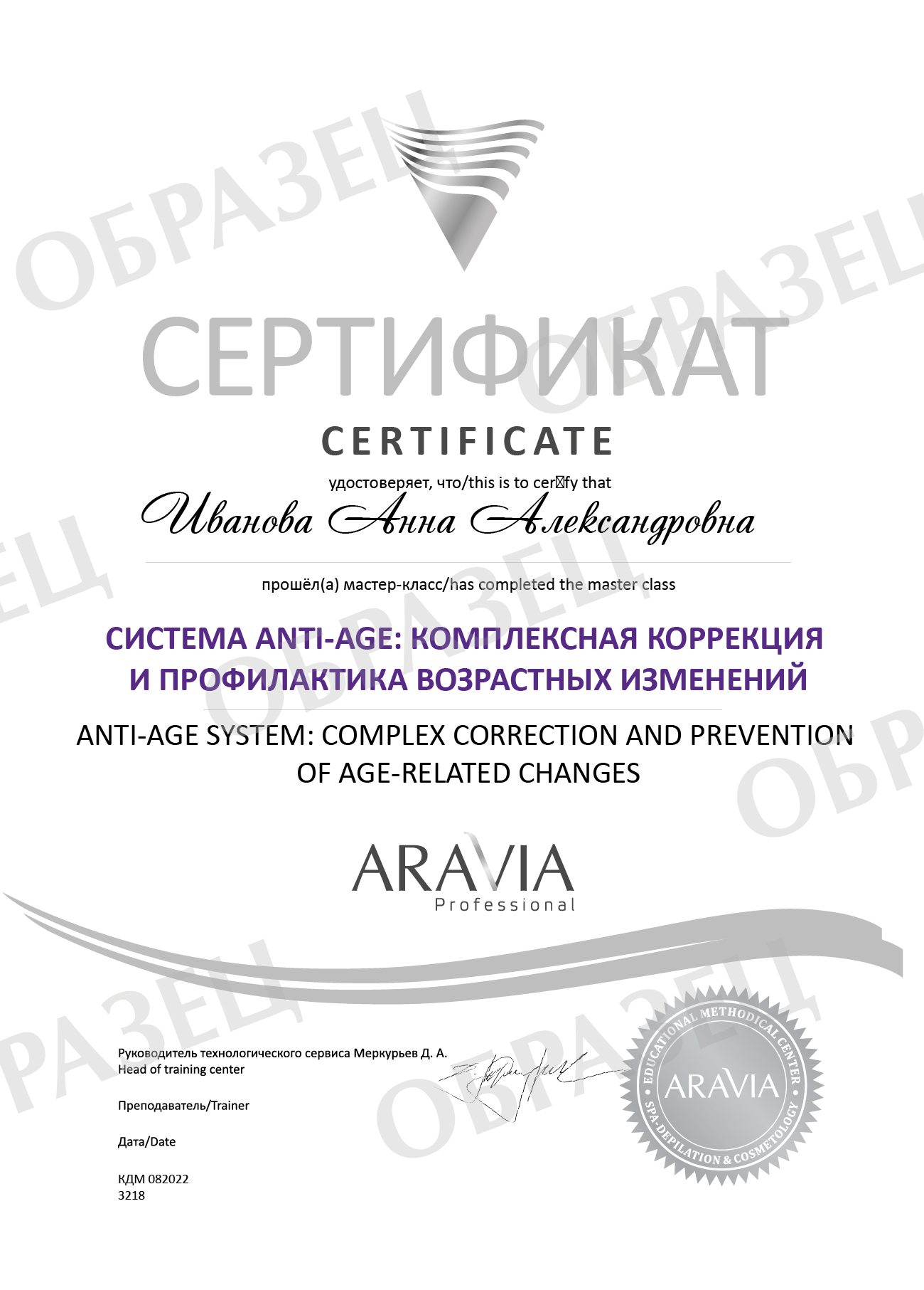 После прохождения мастер-класса участники получат прайс-листы, каталог продукции и именной сертификат о прохождении мастер-класса по теме «Система Anti-age: комплексная коррекция и профилактика возрастных изменений».